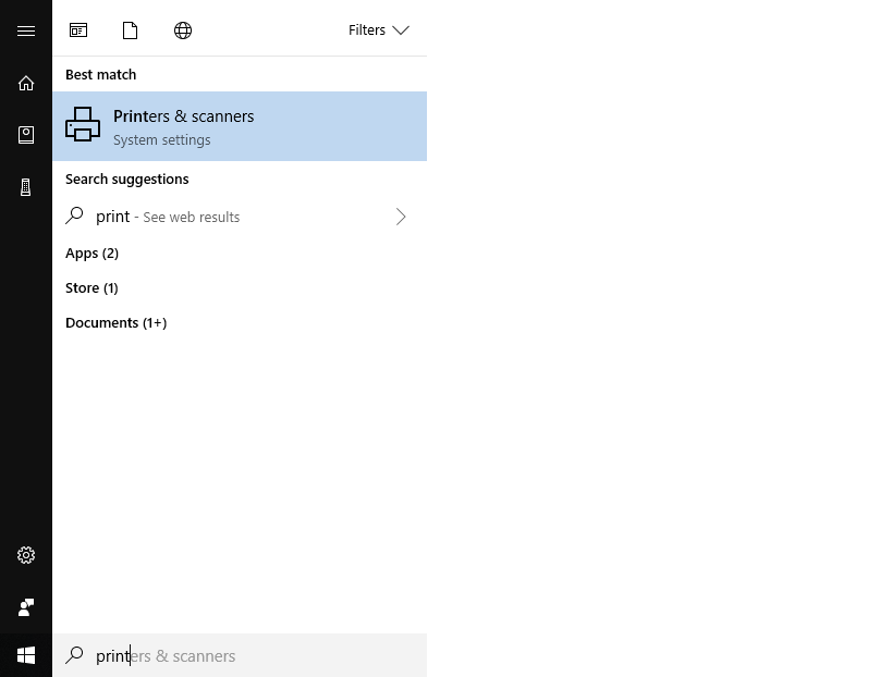 And as I type (until I type the whole word), it will put in a variety of words and things it thinks you should do. These could be file names or services / programs on the computer. By typing in the term “print” (as in the below image) you can see that it will provide a hint that maybe you want the printers management part of “Control Panel.”
