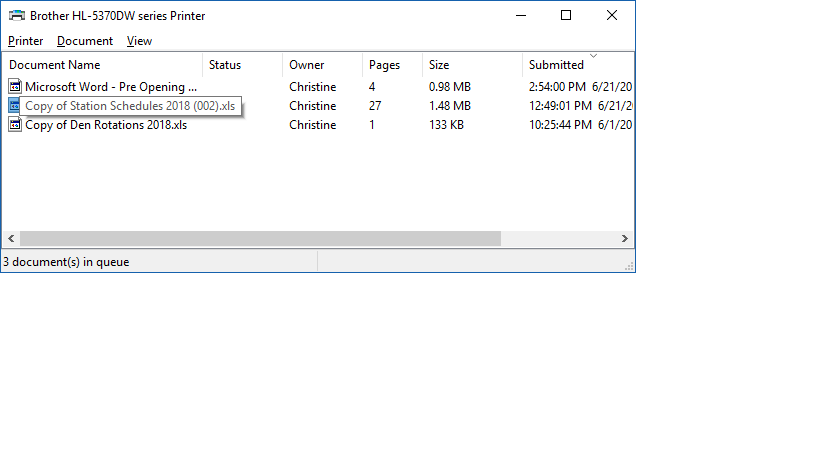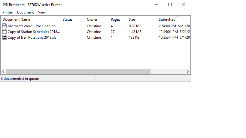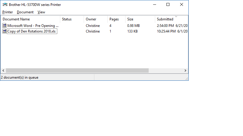And now we can see all the documents in the queue that are waiting to be printed.